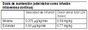 La dosis de carga puede ser administrada sin diluir, pero diluyéndola a un volumen total de 10 ó 20 ml (ver dosis de mantenimiento para diluyentes) puede facilitarse la visualización de la velocidad de inyección (durante 10 minutos).